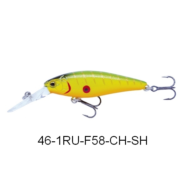 | 46-1RU-F58-kolor | Runner F58 | 58mm | 6g | pływający 0 - 2m | W-TE, B-PL, CH-SH, S-SH, PE, FT, GR-SH |